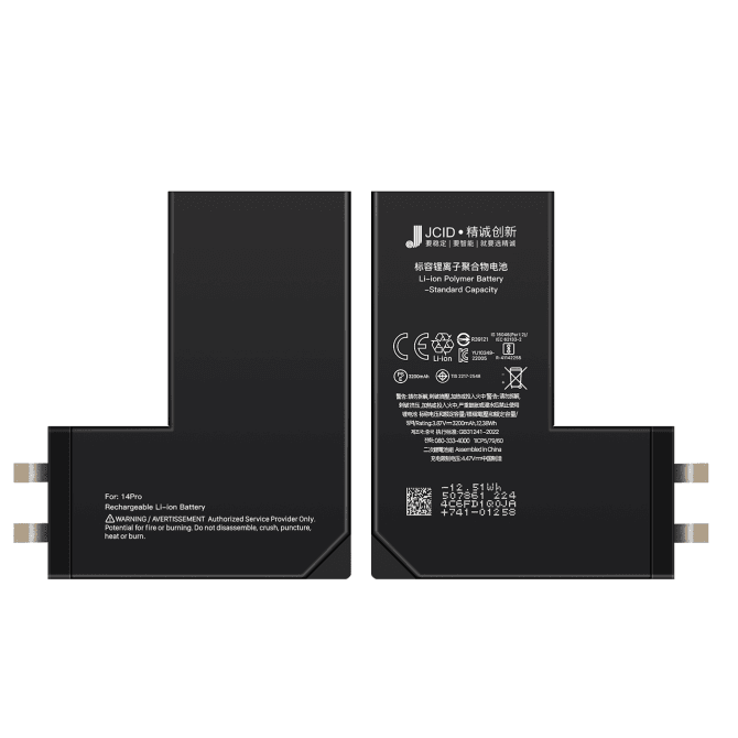La Batería para iPhone 14 Pro High Capacity 3480 mAh sin flex JCID pertenece a la línea de repuestos High Capacity Cell de JCID, una gama de baterías reconocida por ofrecer un rendimiento superior al de los repuestos convencionales. Estas baterías están diseñadas con celdas de litio de última generación que permiten aumentar la capacidad energética más allá del estándar original del dispositivo, garantizando una mayor autonomía diaria y una experiencia de uso más completa para el usuario final.