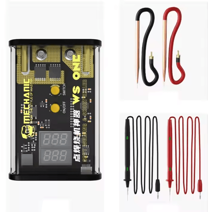 El Mini Soldador por puntos Ws One Mechanic es una herramienta avanzada diseñada específicamente para detectar y reparar fallos de cortocircuito en placas base de teléfonos móviles. Utilizada principalmente en entornos de servicio técnico, esta plataforma de soldadura por puntos es esencial para técnicos especializados en la reparación de dispositivos electrónicos, brindando una solución eficiente y precisa para detectar problemas complejos en las placas base.