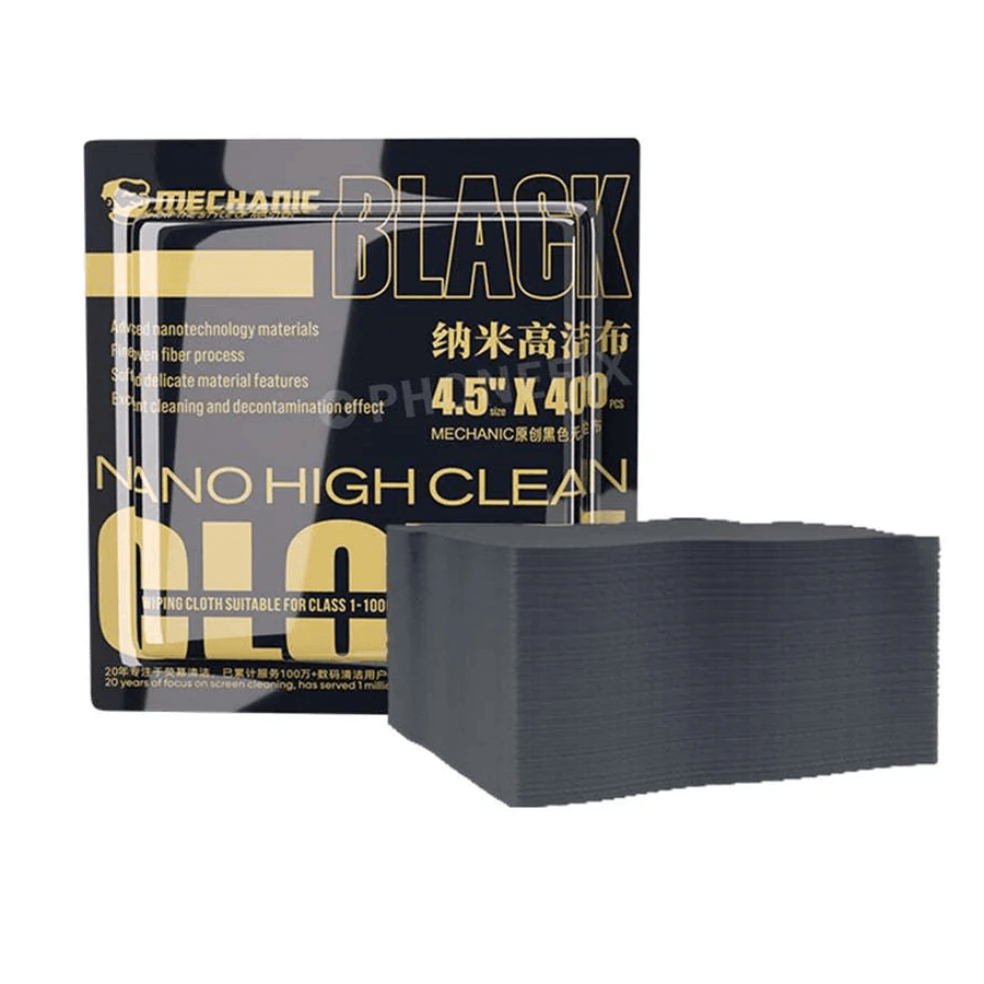 Los Paños de Nano Fibra Negro Mechanic representan una herramienta de limpieza profesional altamente especializada, diseñada para satisfacer las exigencias del trabajo técnico en electrónica y reparación de dispositivos móviles. Gracias a su composición avanzada, ofrecen una solución eficaz para la limpieza de componentes sensibles sin comprometer su integridad. Su uso es ampliamente valorado por técnicos, ingenieros y profesionales del mantenimiento electrónico que requieren precisión, limpieza profunda y seguridad antiestática.